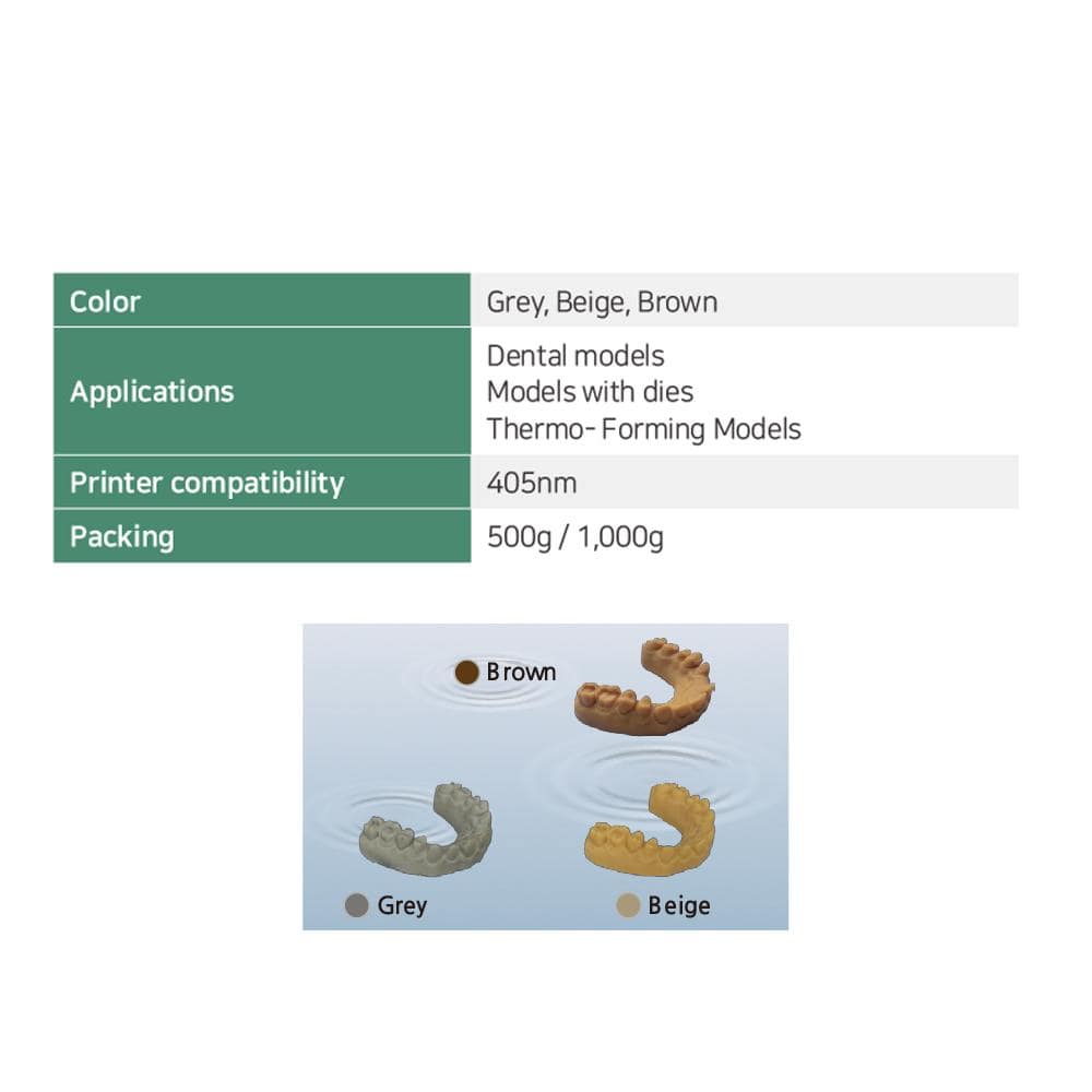 Photo-polymerization dental resins for all types of dental model production for orthodontics and prosthetics.
